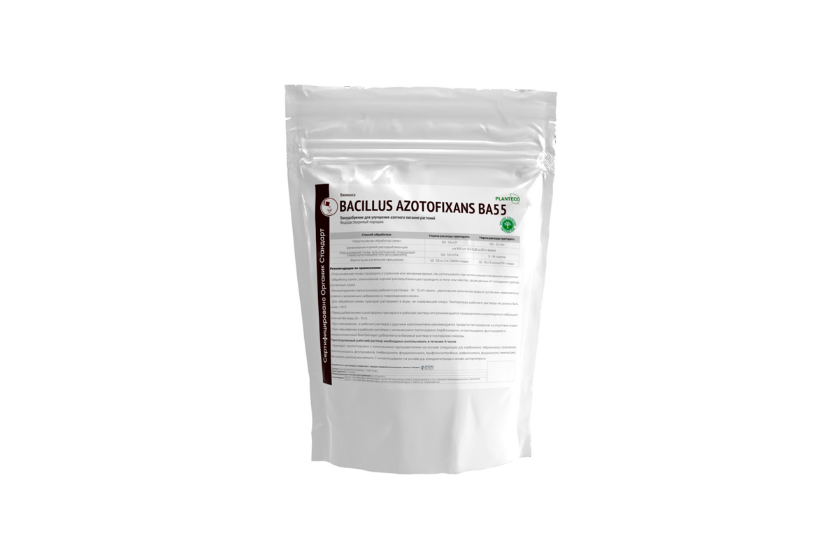 Биомасса Bacillus azotofixans BA55 - биоактивный микробный комплекс для улучшения и оптимизации азотного питания растений и стимуляции роста корневой системы на основе клеток и спор бактерии Bacillus azotofixans штамма BA55 и продуктов их метаболизма (биологически активные вещества).