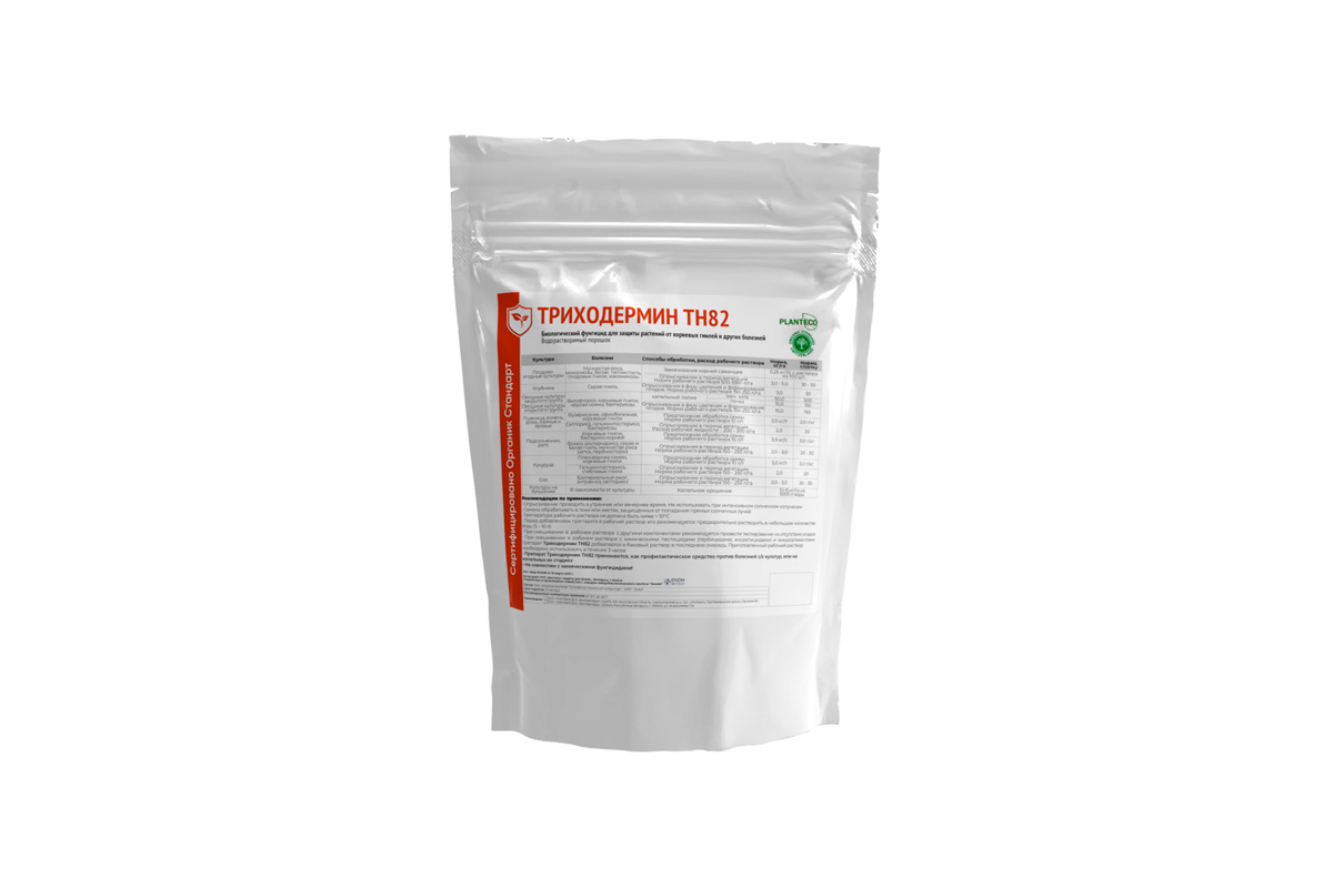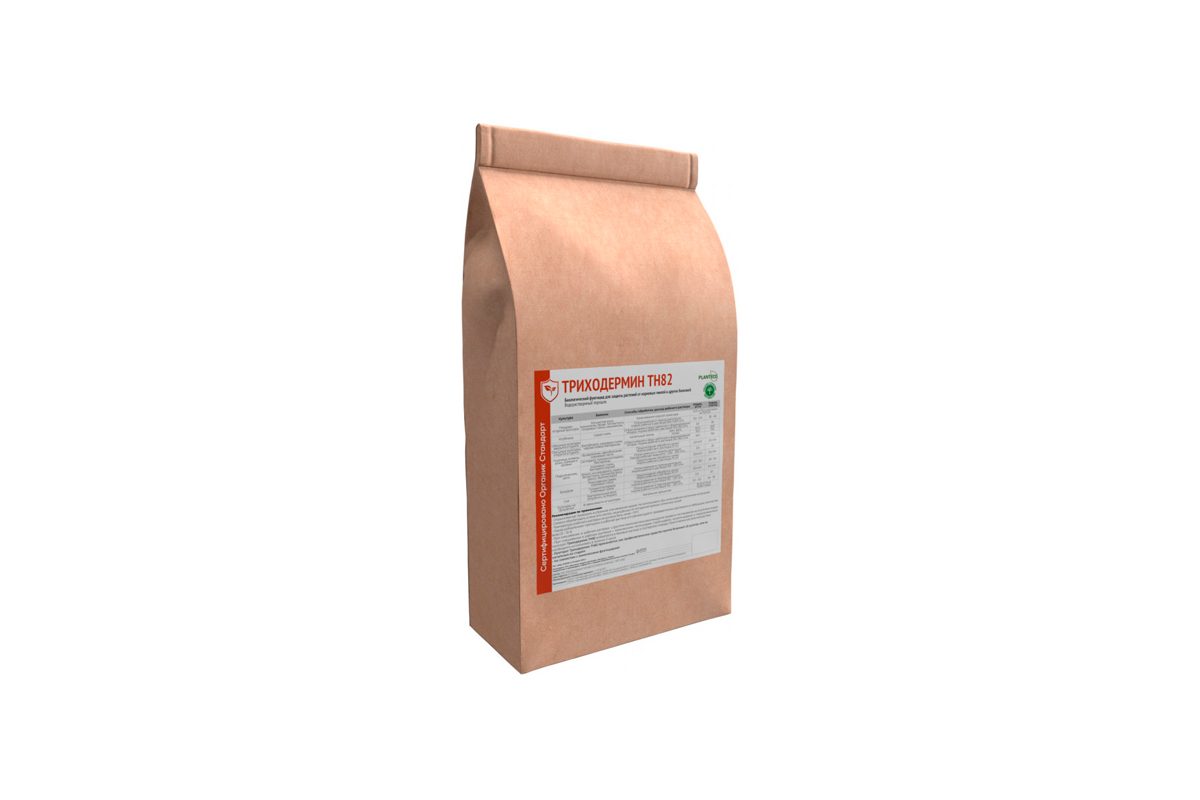 Биомасса Trichoderma harzianum Триходермин TH82 - полифункциональный активный биологический комплекс широкого спектра действия для содействия в профилактике комплекса болезней растений, вызванных фитопатогенными грибами и бактериями на основе спор и мицелия грибов Trichoderma harzianum и продуктов их метаболизма (биологически активные вещества).